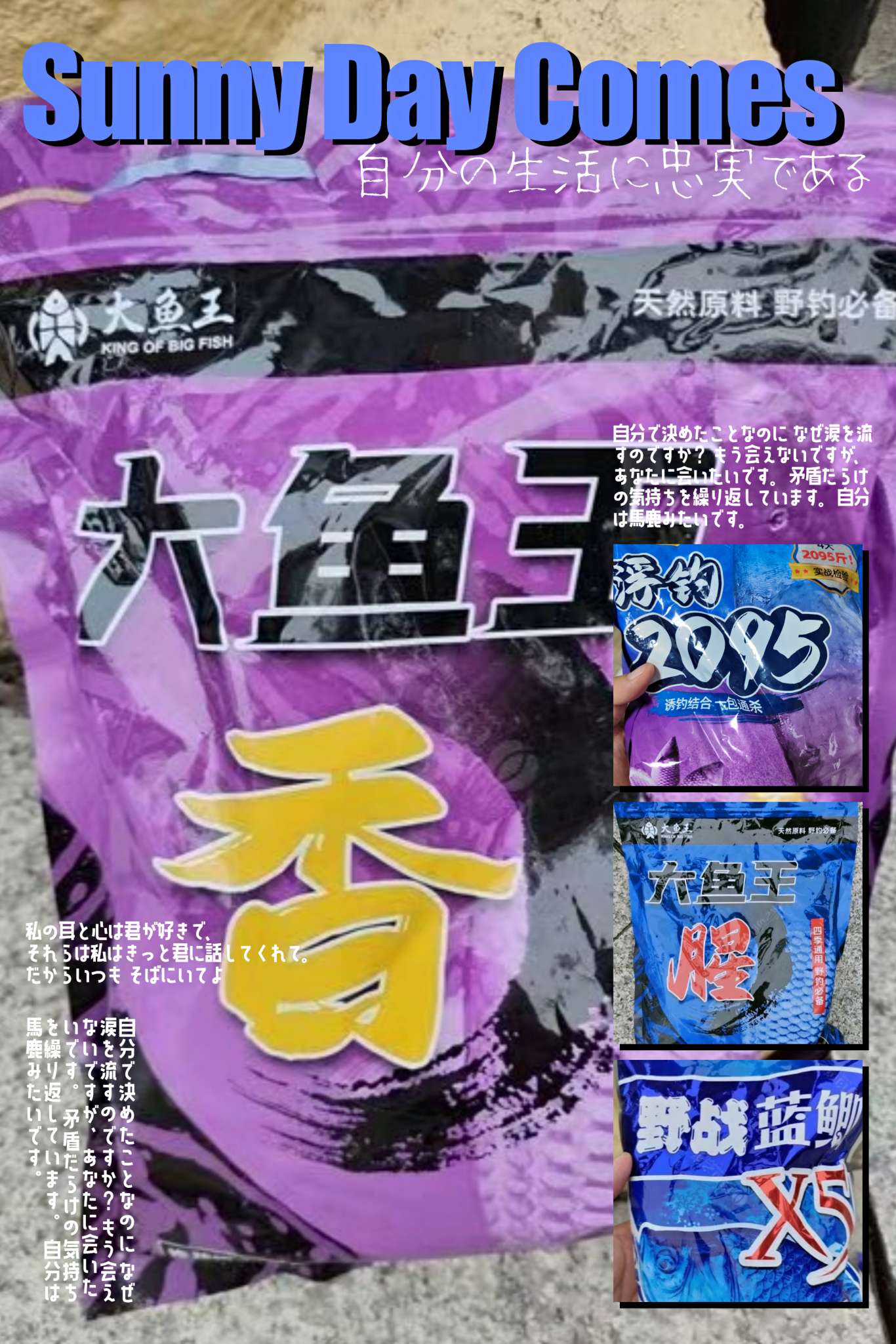 饵料先开好,大鱼王香+腥+野战蓝鲫X5,按照5:2.5:2.5的比例配比,然后加入20%的浮钓2095增加雾化,适量拉丝粉,软粘。