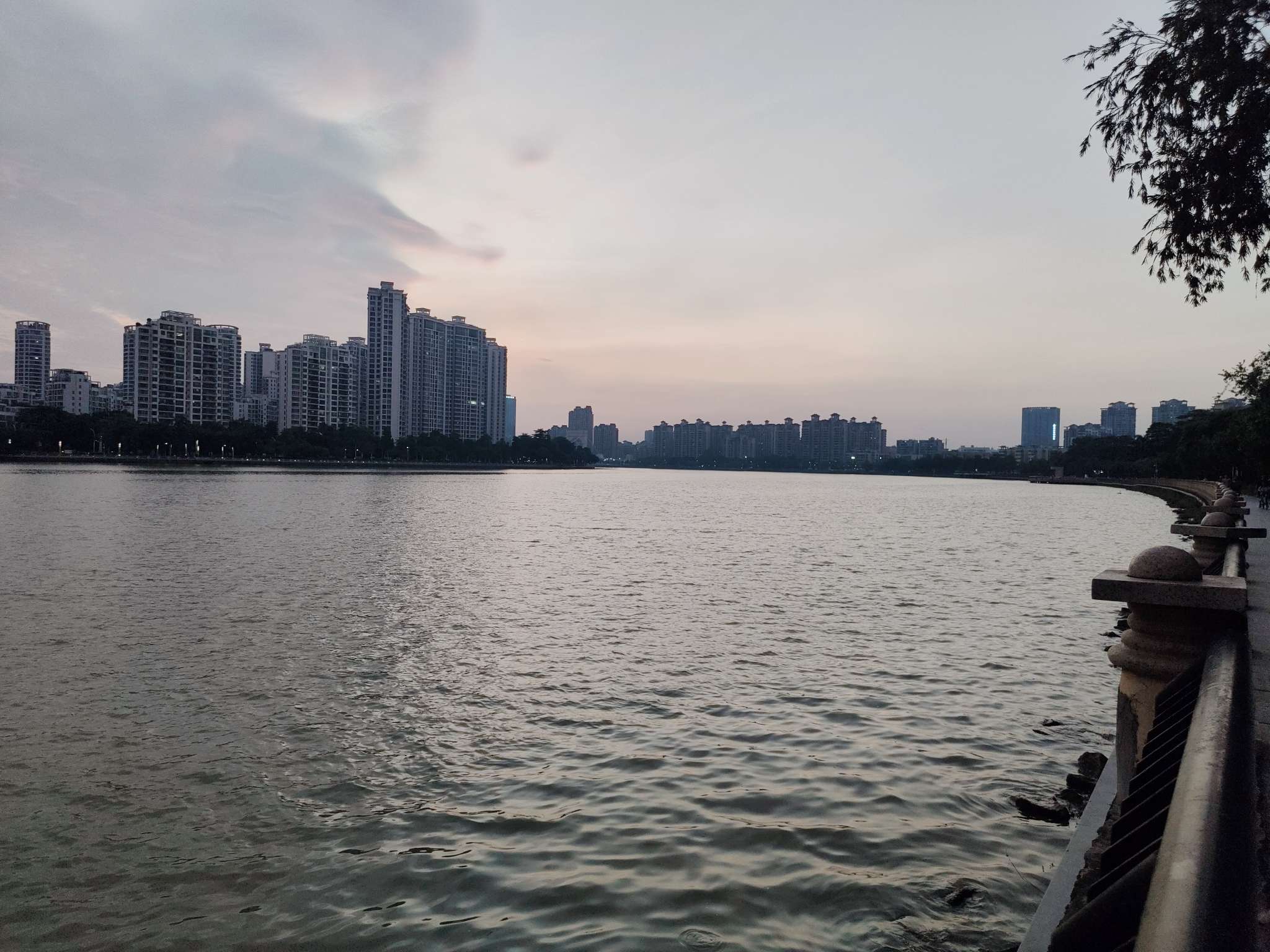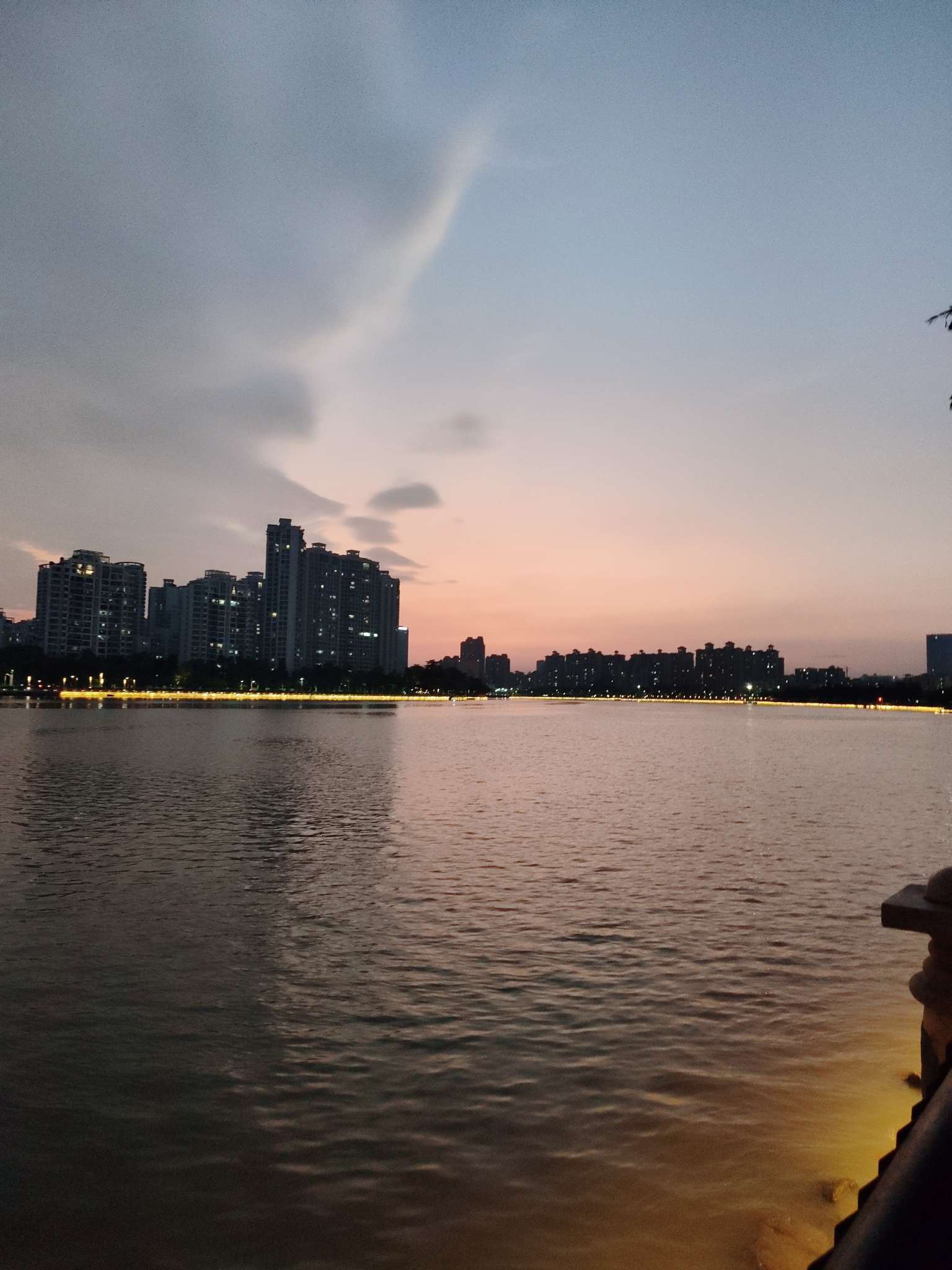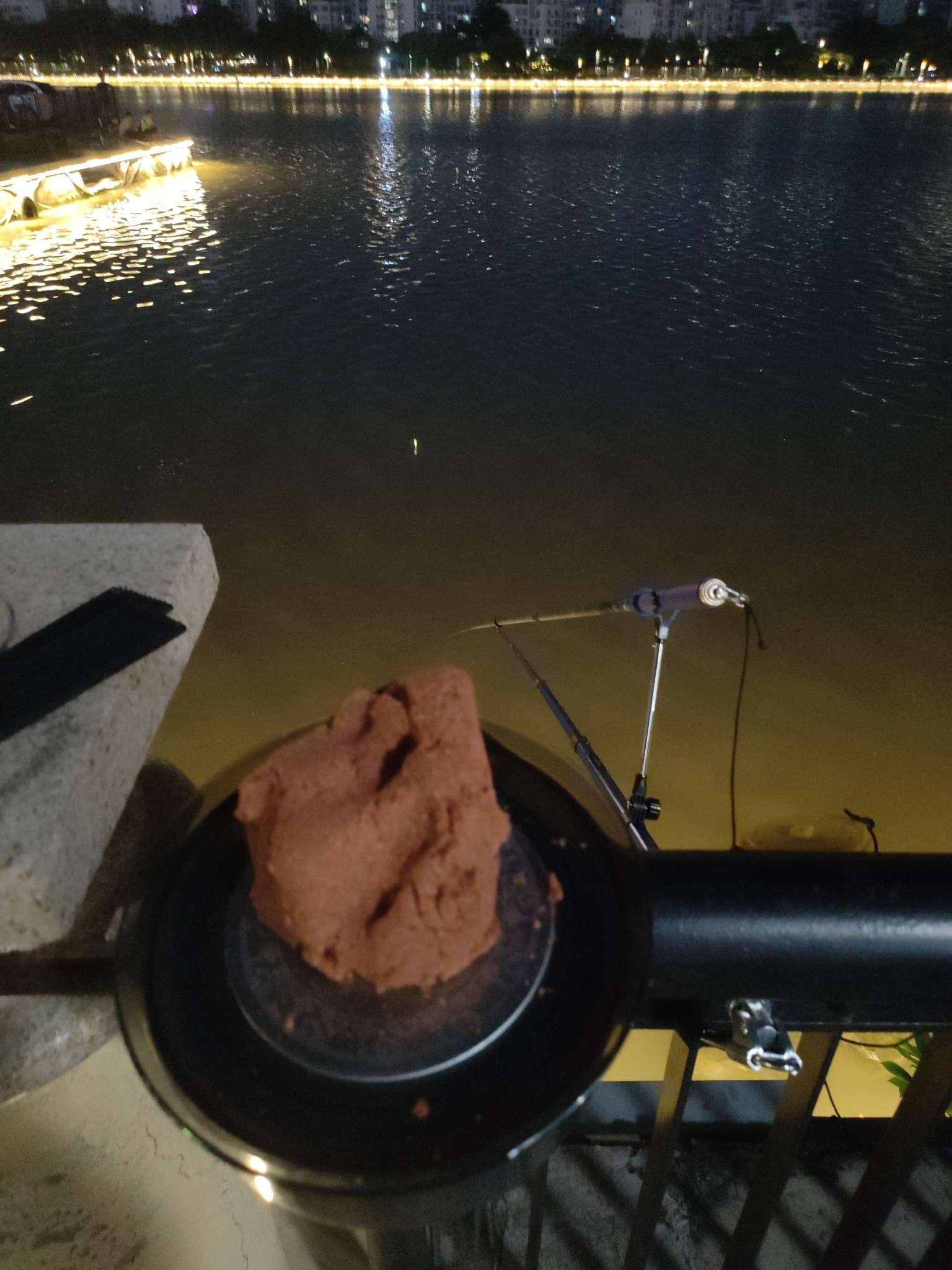 一般来说,入夜之前的几个小时不走水还是比较好钓的,但就是晒一些。黑白交替的时候鱼口反而不好,甚至要到九点多岸边人流退去才开始有口。但今天好的一点就是水位高,还有风,站在岸边特别的凉爽。