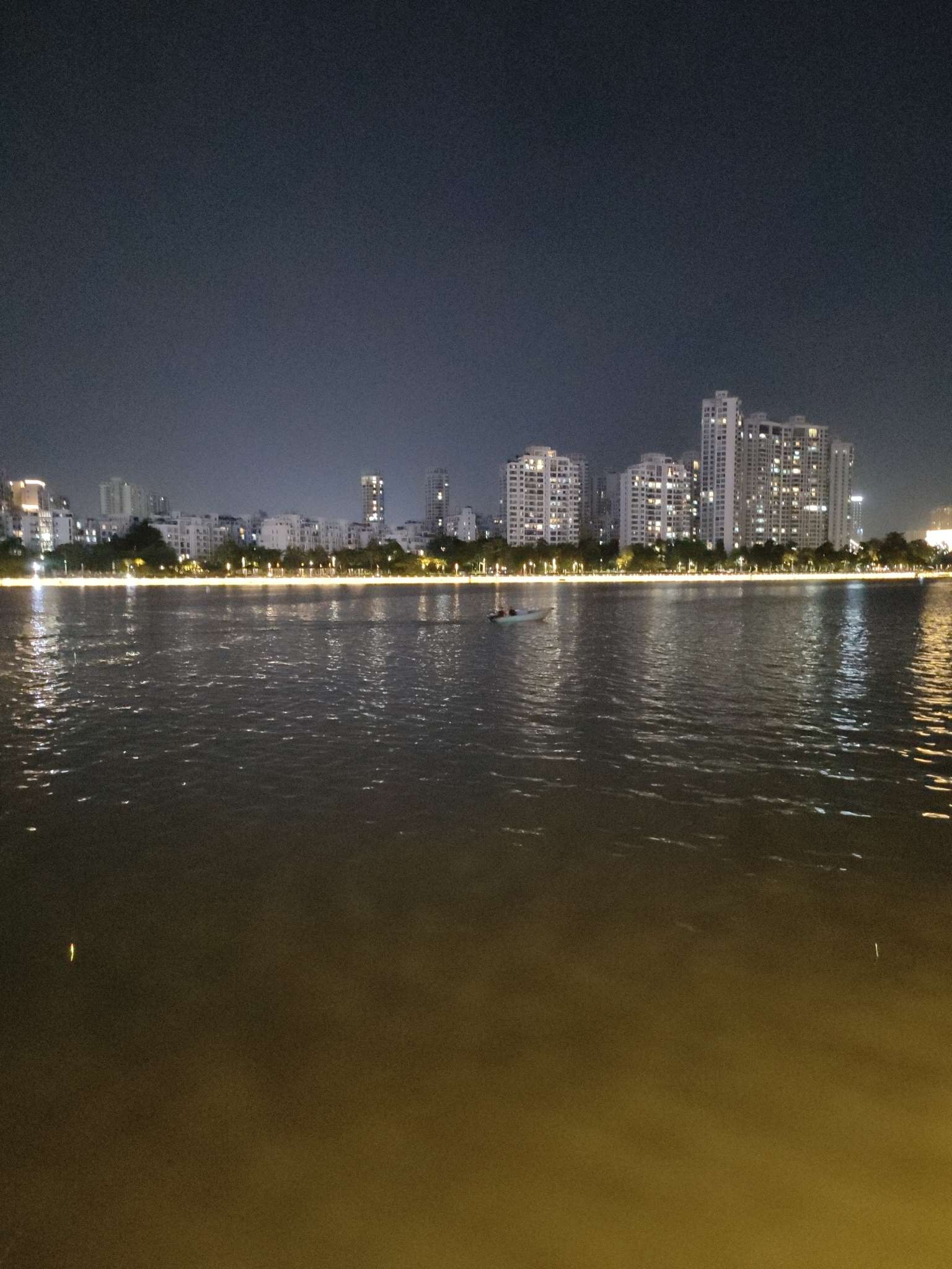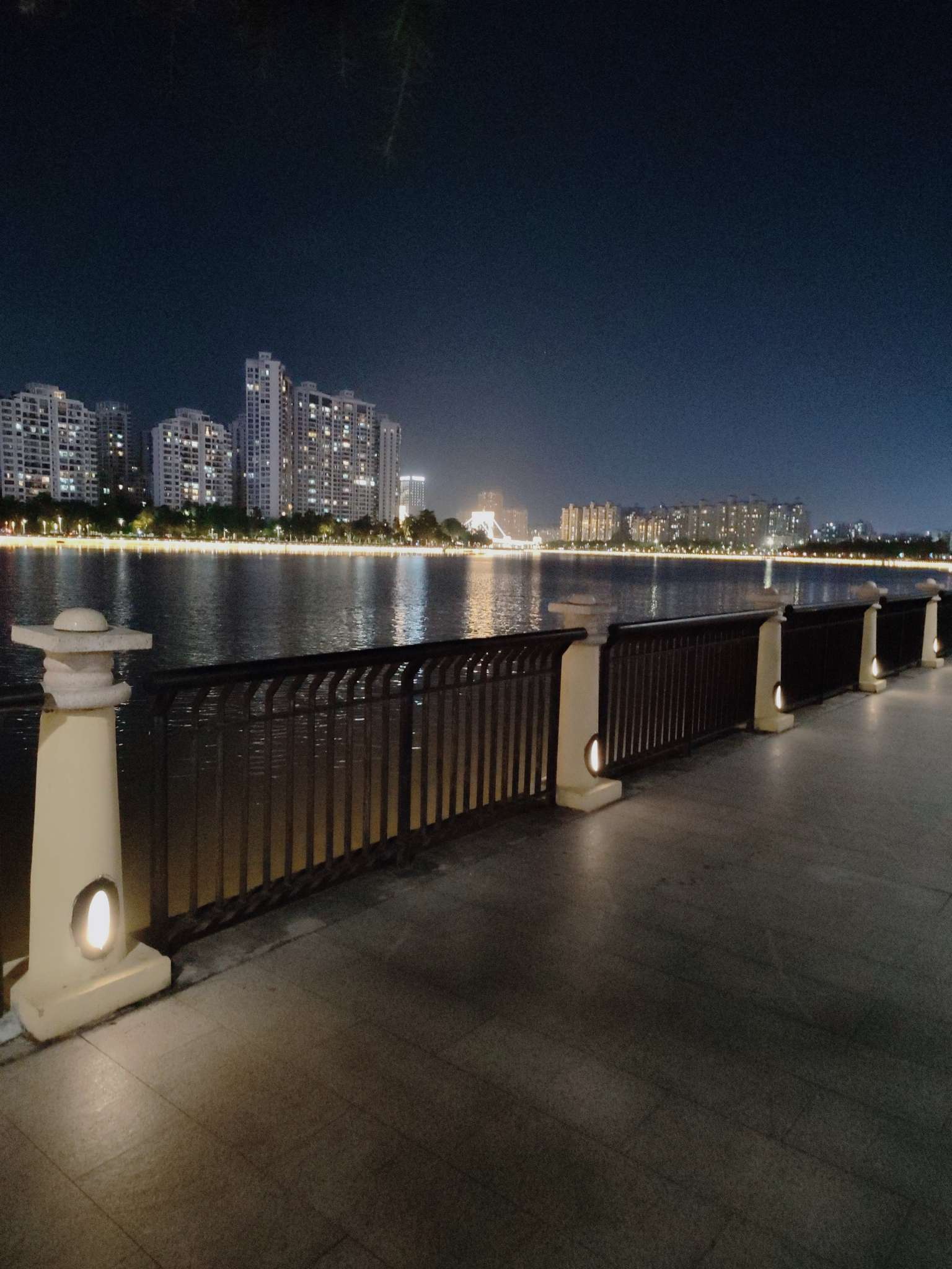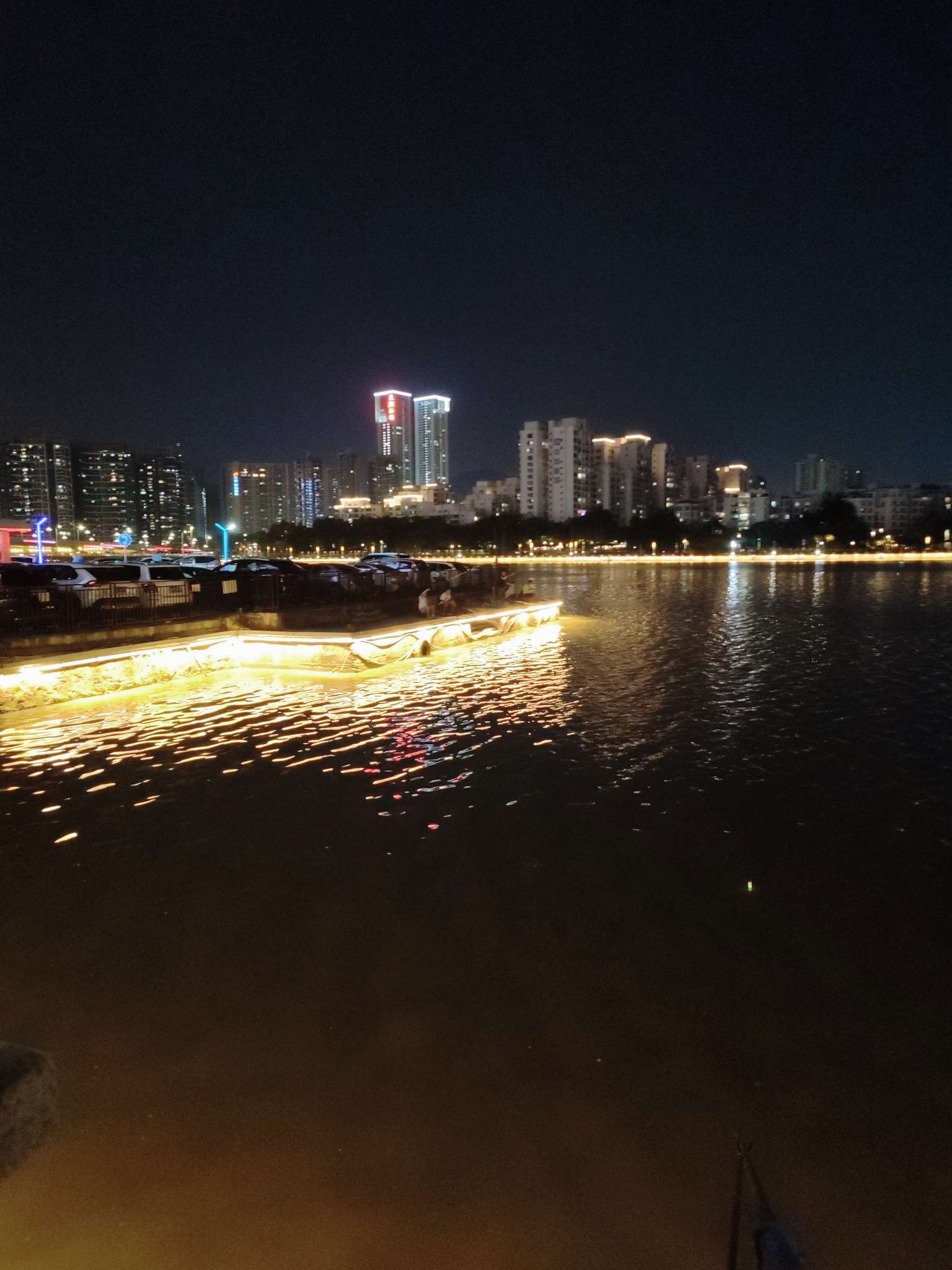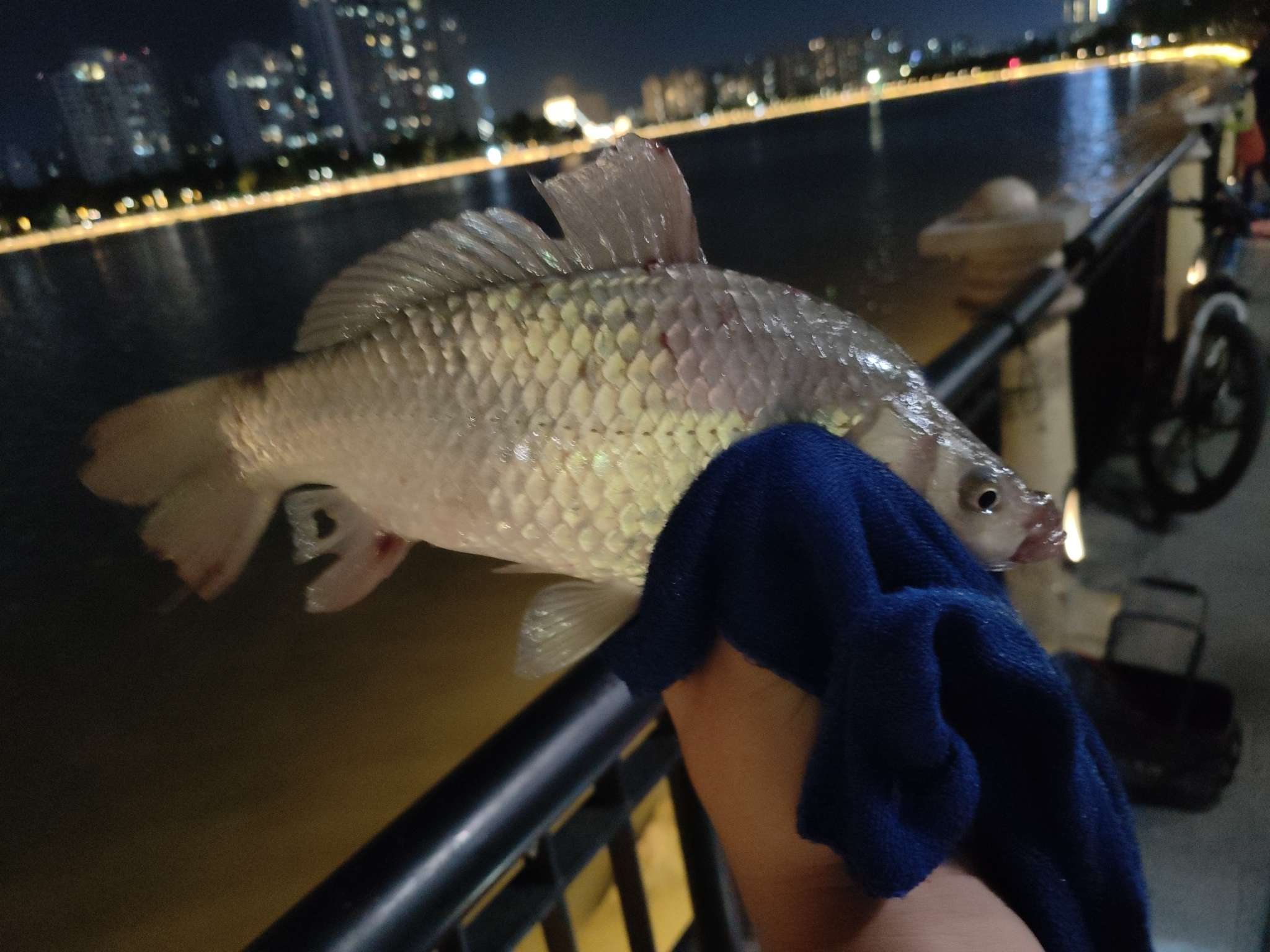 一边钓一边观察着水面,码头上比较暗,但河边有景观灯明暗之下就不太看得清钓鱼人。不过,哪位大神猛的起竿的生声音从刚来一直持续到现在。也是竿子好加上作钓环境空旷,要是在河边,浮漂早都上树好几次了。
