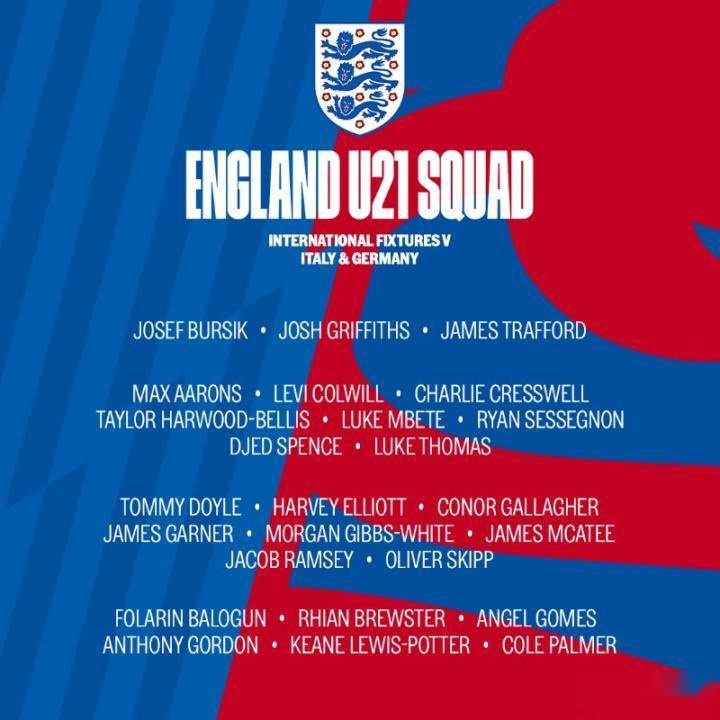 英格兰U21代表队公布了新一期大名单,瑞安-塞塞尼翁、哈维-埃利奥特、加拉格尔、詹姆斯-加纳以及帕尔默等球员入选。