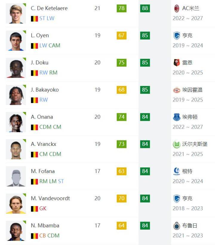 足球数据网站sofifa近日公布了FIFA23球员潜力值,夏窗加盟AC米兰的中场德凯特拉雷潜力值达到88,成为比利时U23年轻一代最高,能力值比上代升1,具体盘带,平衡,拦截,跑位能力上涨最多