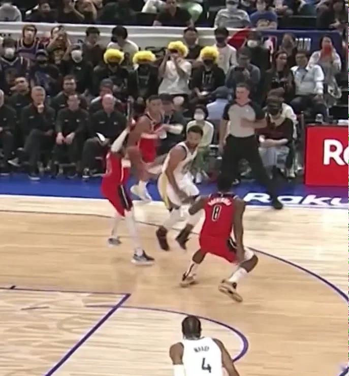 8、库里在季前赛中遭遇三人包夹。 勇士和奇才的季前赛半场休息时,美国媒体晒出一张比赛中的截图,为库里持球遭遇三人包夹的画面。该媒体写道:在季前赛中,他们用三个人包夹库里。