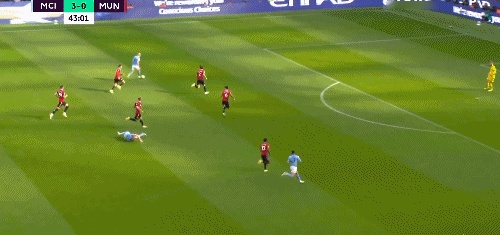 第 37 分钟,格雷利什中路分球,德布劳内右路送出绝妙助攻,哈兰德倒地铲射梅开二度,曼城将比分改写为 3-0 !