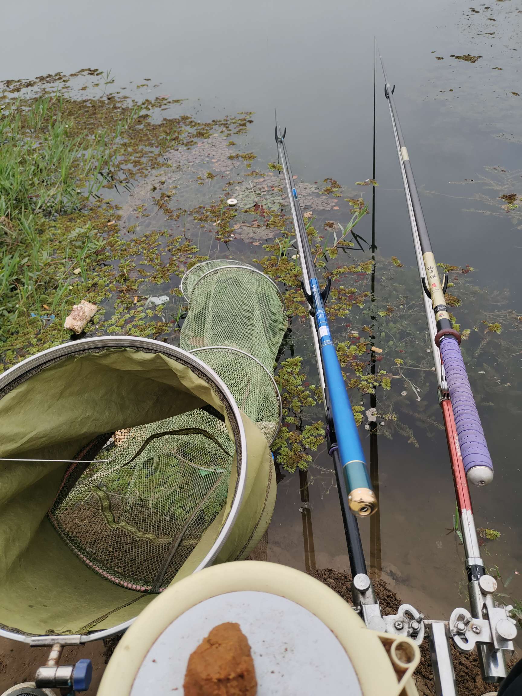 刚开始钓鱼的时候,买了两根鱼竿,一根三米六,一根七米二。那时候想的是长的钓远,短的钓近,两根鱼竿足够用了,总共花了两百多块钱。