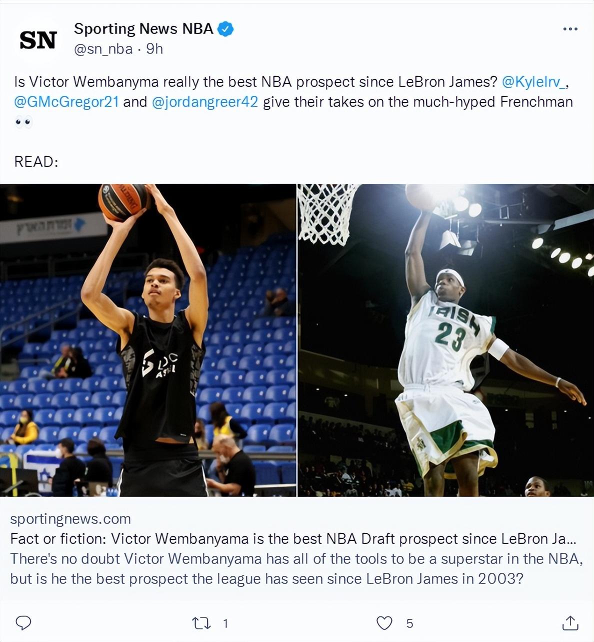 SN体育在官网上写道:维克托-文班亚马真的是自勒布朗-詹姆斯后最好的NBA新秀吗?文中有人赞同,也有人反对,一部分的选秀专家实际上更看好亨德森。