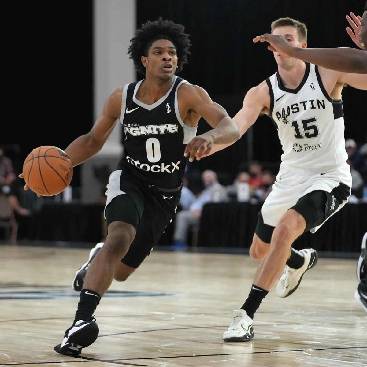 亨德森今年18岁,身高1.91米,臂展2.06米是一位身体素质极度炸裂的控球后卫,上赛季场均31.5分钟,拿下14.7分4.6篮板4.8助攻1.6抢断0.3盖帽,命中率46.6%,三分命中率25%。