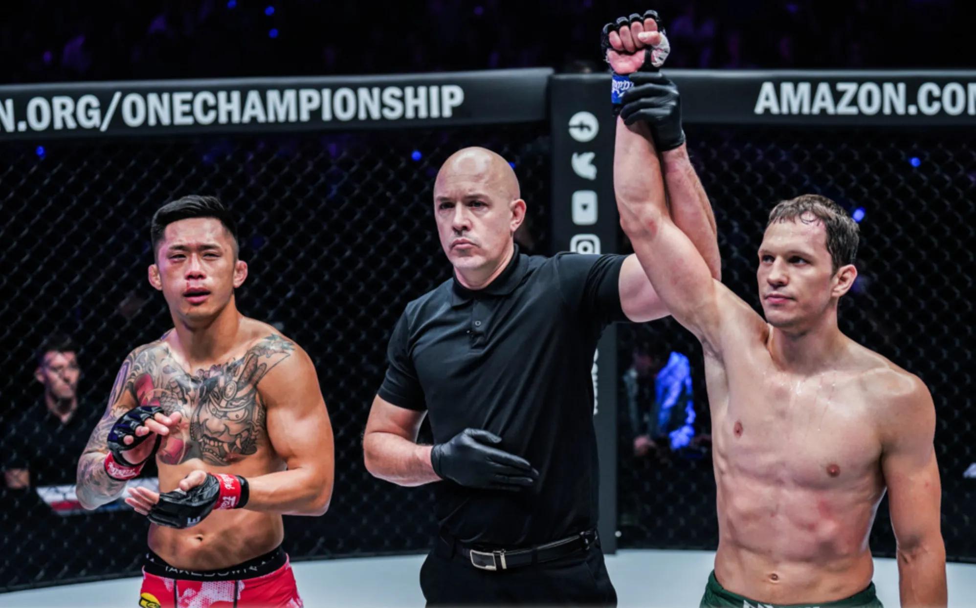 这是弗雷曼诺夫的圆笼首秀,在此之前他打出10胜2负9次终结的优异战绩。在这场比赛中,1.8米的弗雷曼诺夫拥有着绝对的身高优势,他非常好的控制了距离与比赛节奏,阮马丁纵使经验丰富但也无法打出能够威胁到弗雷曼诺夫的进攻。就在第一回合仅仅进行到3分多钟时,弗雷曼诺夫一次膝撞造成阮马丁头部后仰,随后凶悍的直拳直接命中阮马丁头部将其击倒。在不断地砸击中,裁判终止比赛,弗雷曼诺夫兵不血刃的拿下ONE冠军赛首秀胜利。