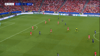 直到比赛第69分钟时,姆巴佩才完成了第一次射门。在禁区弧左侧,姆巴佩右脚大力兜射,皮球飞向球门远角。本菲卡门将弗拉霍迪莫斯做出了世界级扑救,他单手将球托出了底线。平心而论,姆巴佩的这记射门质量非常高。