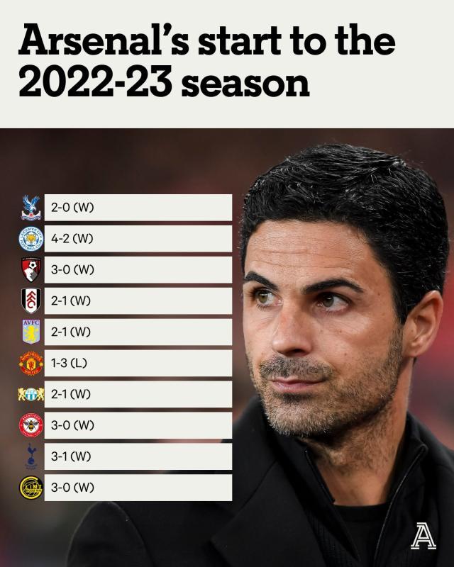 这是阿森纳俱乐部历史上第3次在开赛前10场比赛中拿下9场胜利,上次还是2007-08赛季,当时枪手同样在开局领跑,直到次年2月才受伤病影响将榜首位置让出。而再往前,则要追溯到遥远的1903-04赛季。不过枪手的灿烂开局很快就将在周末再度迎来考验:球队在周日主场对阵利物浦,这将是对他们开局战绩成色的重要检验。