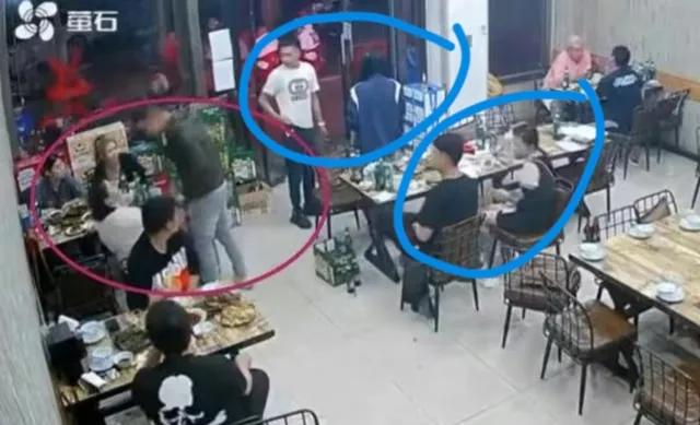 “我看到绿衣服男子 进店时就望向 被打女子一桌。 等他点好菜 路过被打女生饭桌时,他故意骚扰穿白衣服的女生。女生问她‘干啥呢你’,这个男的说了一句 侮辱女性 的话。”