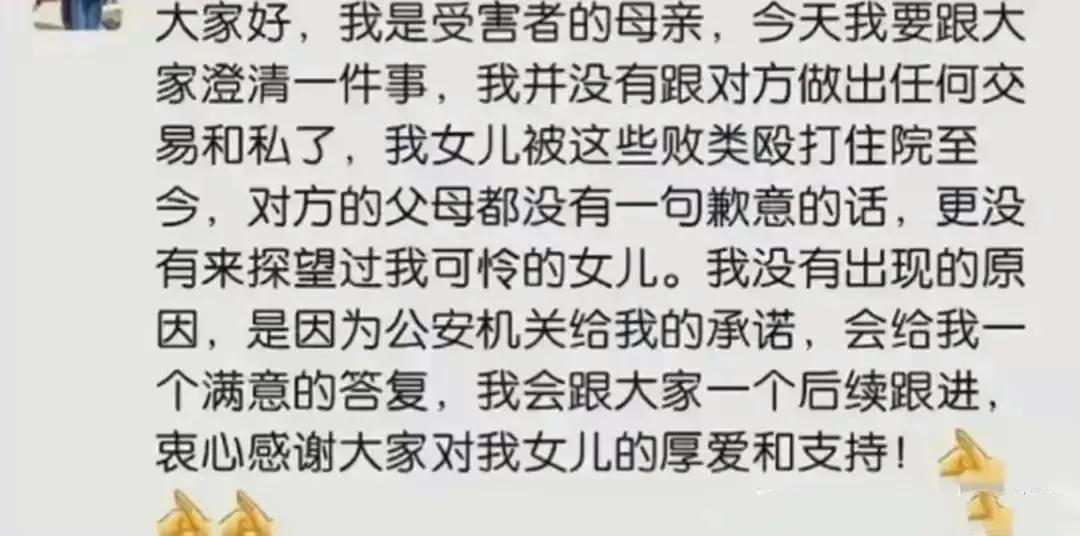 大家其实从各方渠道都已经获知,这几个被打女子目前都挺好的,中秋节还和家人一起共度佳节。大家也不用太惦念了,她们都挺好,说到底,大家之所以这么关注被打者,其实也是要对自己有一个交代。