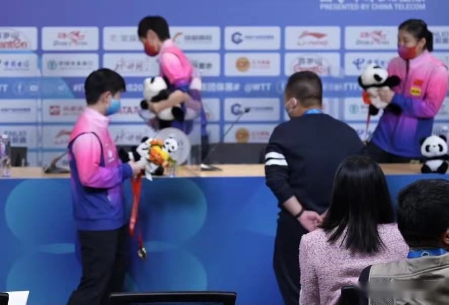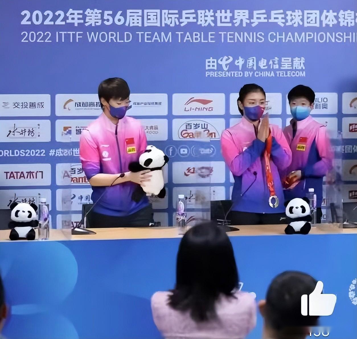 王曼昱、陈梦、陈幸同都是有样学样,纷纷顺走了熊猫玩偶,成了发布会上一道靓丽的风景线。看到这一幕,网友感叹国乒金花实在是反差萌,在赛场上是“杀气十足”,在场外却是可可爱爱。