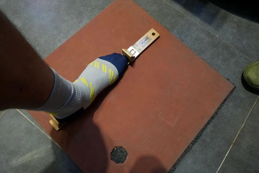 然后需要穿在脚上静置一段时间,等待碳纤维硬化即可。整个热塑过程大约一个小时。