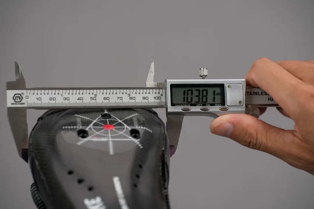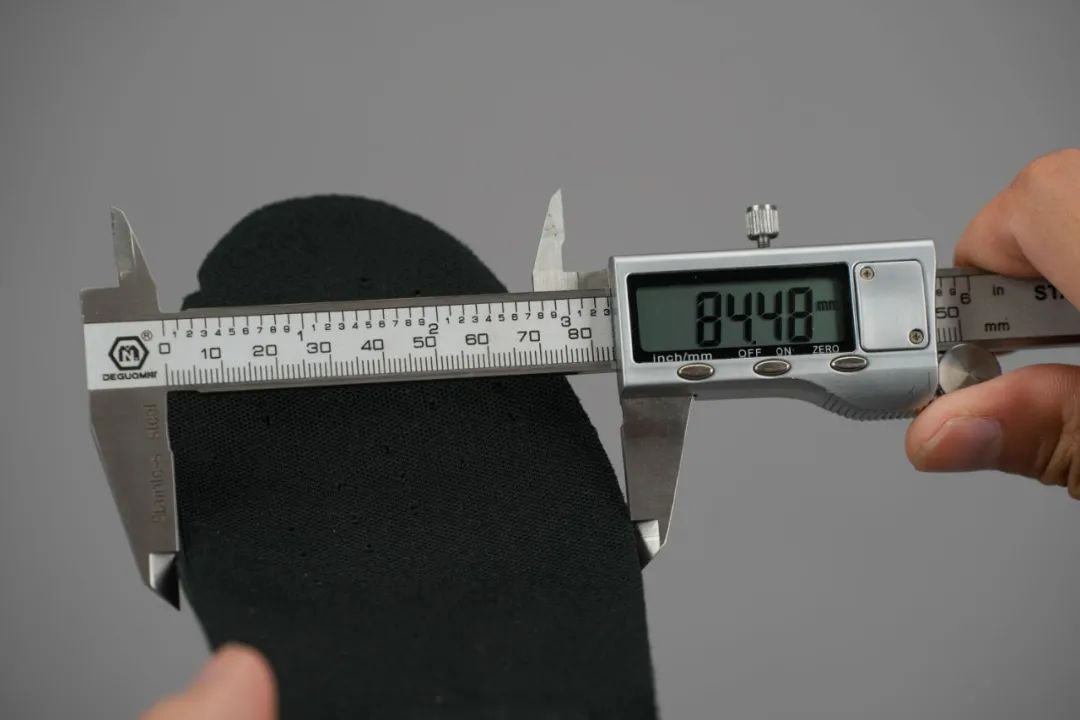 热塑后的CX403宽版(41.5码),实测最大外宽103.8mm,官方标称数据是102.8mm,基本一致。