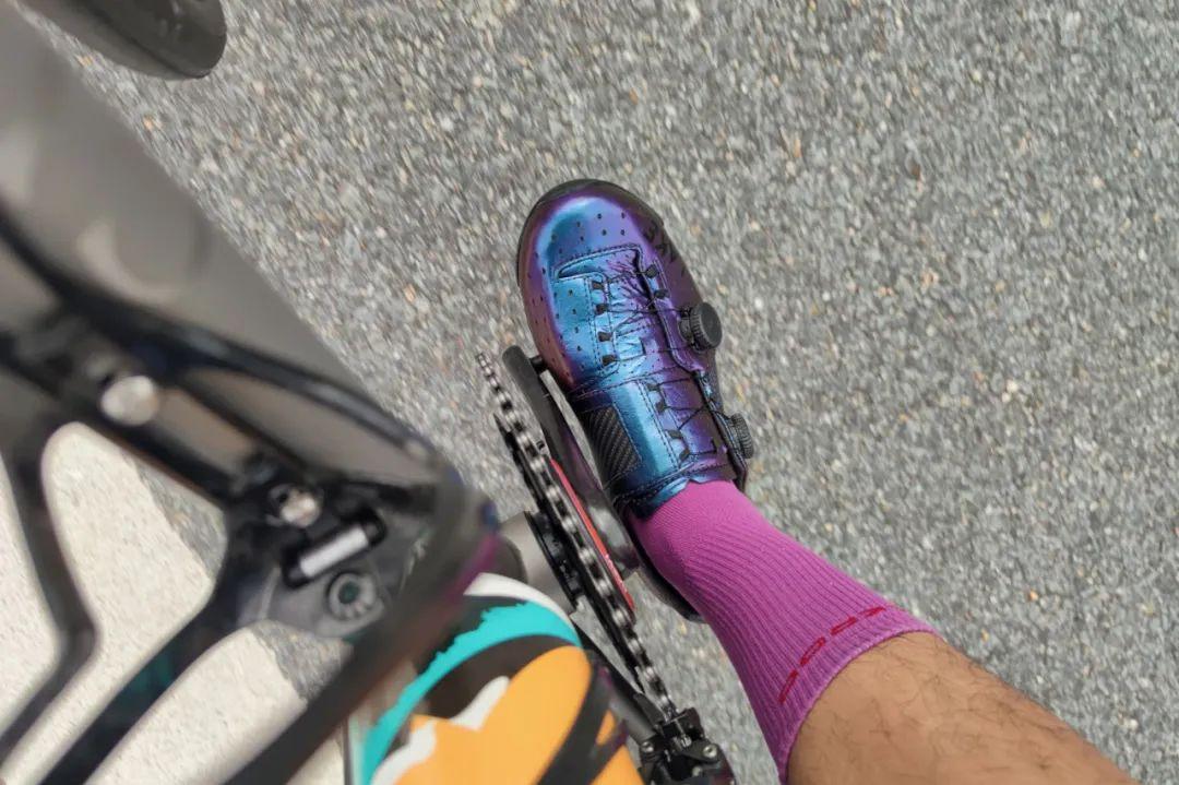 鞋底的硬度非常大,跟杯的贴合性完全发挥出热塑锁鞋应有的水准,足弓后段有较为明显的“夹持感”。做摇车发力、高踏频、提拉画圆等大幅度的动作时,双脚都几乎在鞋里面一动不动,抖M狂喜。