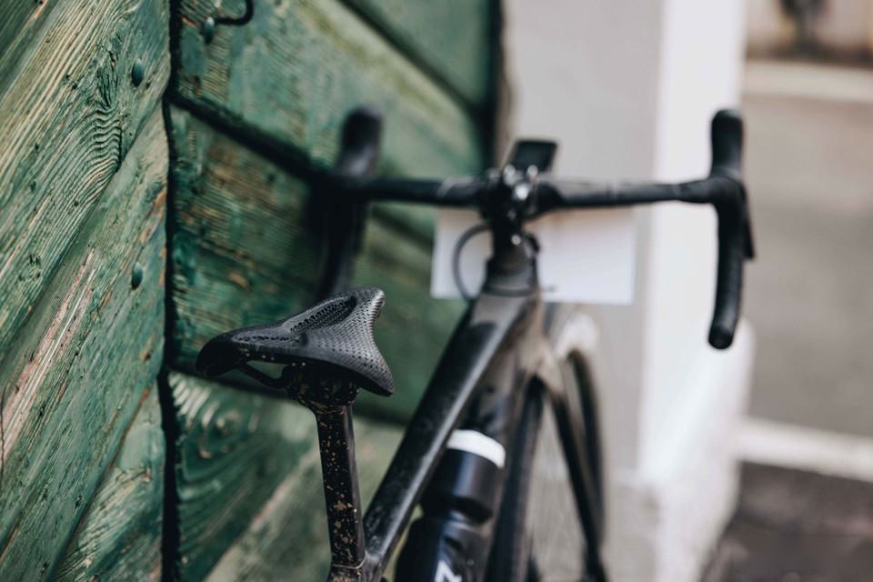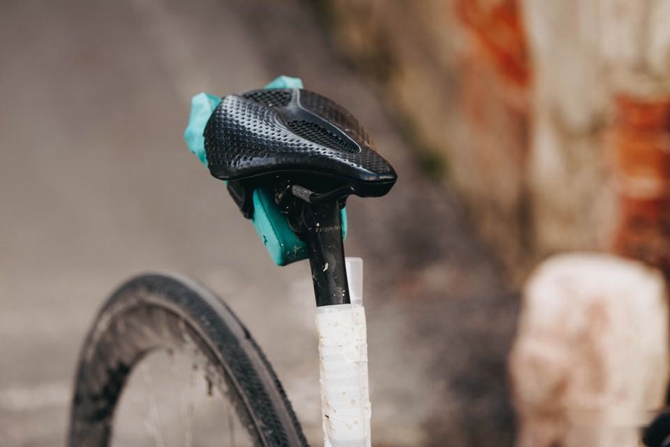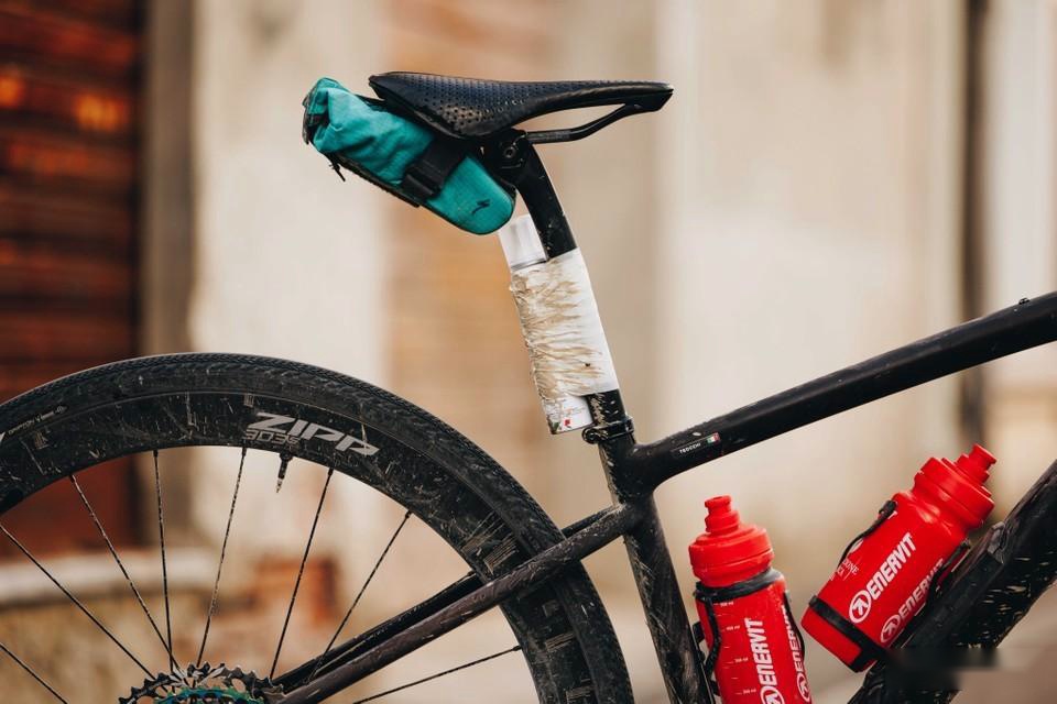 由于Gravel赛的后勤比公路车比赛要少,Teocchi选择了更保险一些,将真空胎补胎液/充气机绑在Roval Terra座杆上,并装备了S-Works Power with Mirror车座下方的尾包。