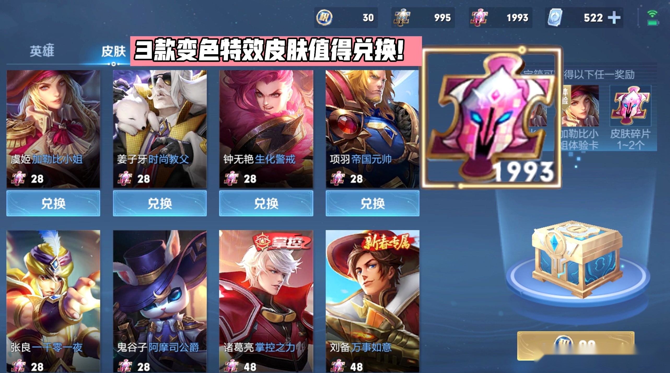 结语:刘备“潮玩造梦师”提前上架商店,皮肤图鉴新增套系,同时冠军皮肤签名信物正式开放兑换,另外点券英雄嬴政加入夺宝,大家先别急着抽取,两种方式获取不浪费点券,碎片商店更新后,三款变色特效皮肤值得兑换。那么小伙伴们你还期待哪款久未出现的皮肤加入换取呢?欢迎留言讨论!
