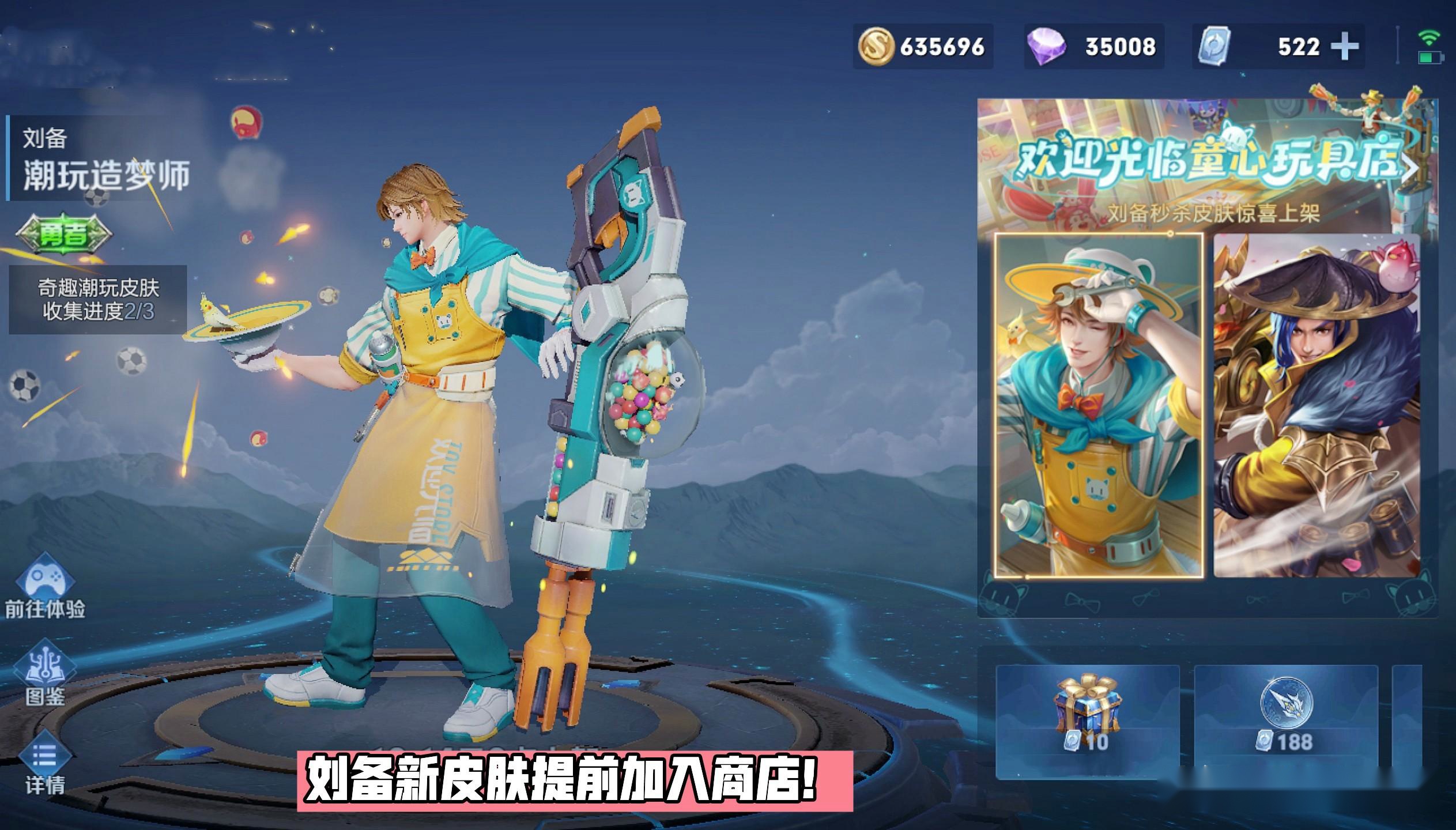 王者荣耀正式服在时隔半个月后终于迎来新一轮的版本更新,与去年同期的限时点券、猪悟能和4款周年限定皮肤免费送相比,今年可谓没啥福利,仅开启了月桂币系列活动和上架了刘备60点券勇者皮肤。目前刘备新皮肤“潮玩造梦师”已在更新后加入商店,玩家可提前查看局外模型和进场动作!