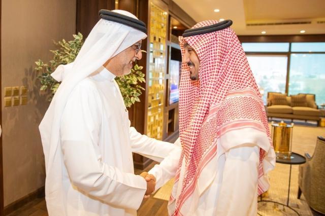 亚足联主席萨尔曼(左)拜会沙特体育部部长阿齐兹(右)