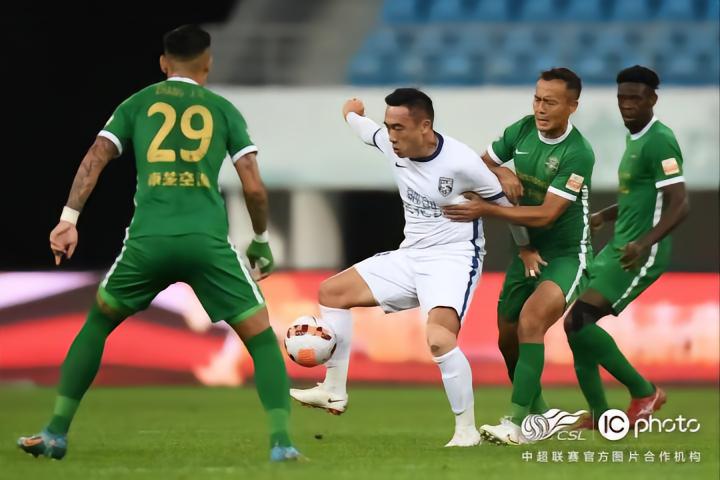 然而这些摸索,到了9月份,却变成了完全不一样的困难。前文中我们所叙述的球员,除了戴维森之外,都或多或少缺席了5场比赛中的一部分甚至于是全部。于是在几乎每一个位置上,我们都看到了完全不一样的组合,有且不限于戴维森+张辉+徐皓阳三叉戟,张晓彬梦回2019天海时代重返中卫位置。在这种情况下,部分位置的作用微调必不可少,但是从整体技战术而言,球队是否还要坚持此前掌握球权主导进攻的风格?