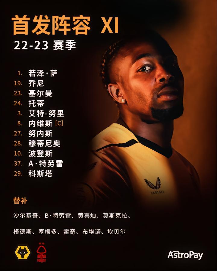 北京时间10月15日22:00,英超第11轮,狼队在主场迎来了诺丁汉森林。