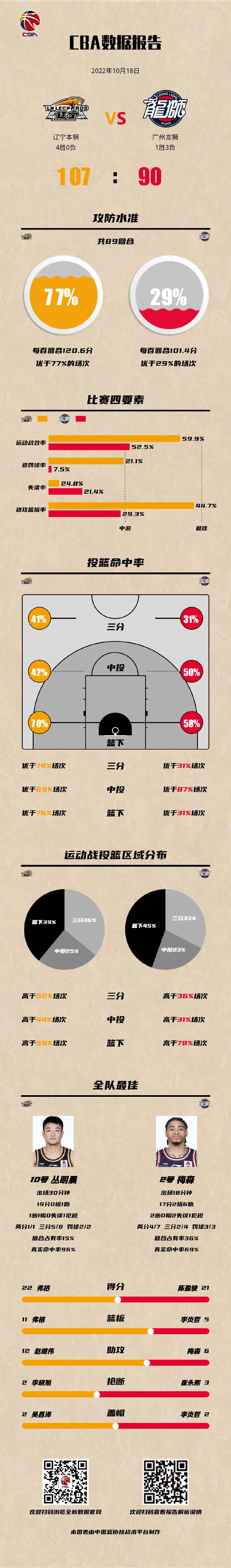 虽然辽宁男篮主力球员郭艾伦因违反赛区规定停赛6场,本场比赛无缘出战,但他们的整体实力依然要比广州龙狮强,最终以107比90战胜广州龙狮,豪取开赛四连胜。