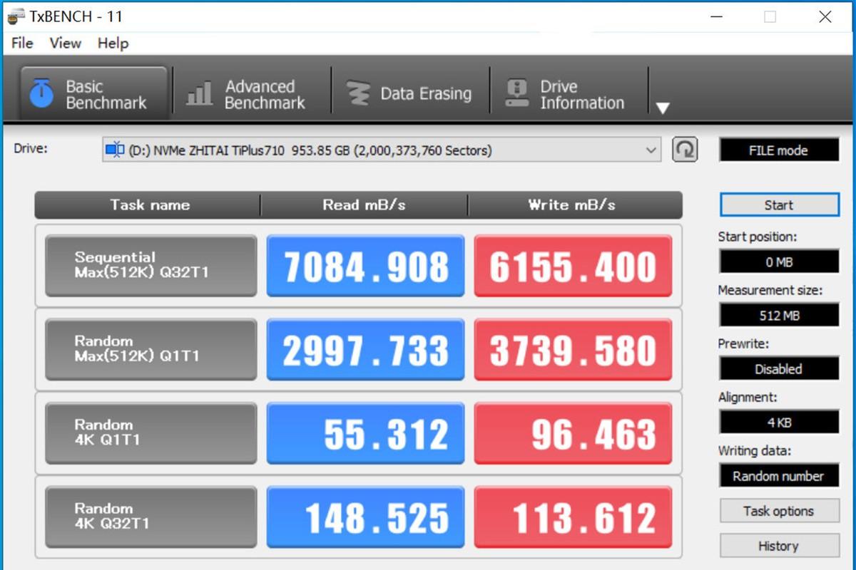 从第三方测试数据来看,这款产品的连续写入超过6000MB/s,连续读取超过7000MB/s,4K随机写入性能也相当不错,基本能够把PCIE4.0接口的速率拉满。其他品牌也有这个价位的PCIE4.0 SSD,但往往速率上限是5000MB/s左右,比如西数的SN770之类,性能规格还是要差一些。