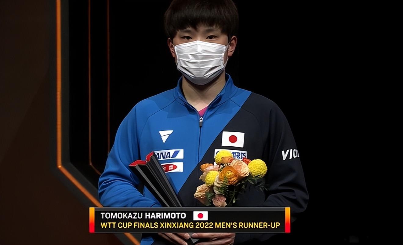 赛后的颁奖仪式,亚军张本智和获得鲜花和奖杯。