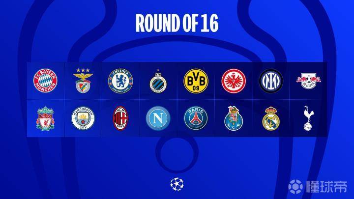 小组第二:利物浦、布鲁日、国际米兰、法兰克福、AC米兰、莱比锡、多特蒙德、巴黎圣日耳曼