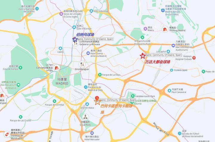 巴列卡诺俱乐部位于西班牙中部的首都城市马德里东南部的巴列卡斯地区,主场距离马德里市中心仅约5公里,与位于马德里北部的伯纳乌球场离市中心的距离相近。马德里市的球队主场中,马德里竞技的万达大都会球场离市区的距离最远,距离约9公里。