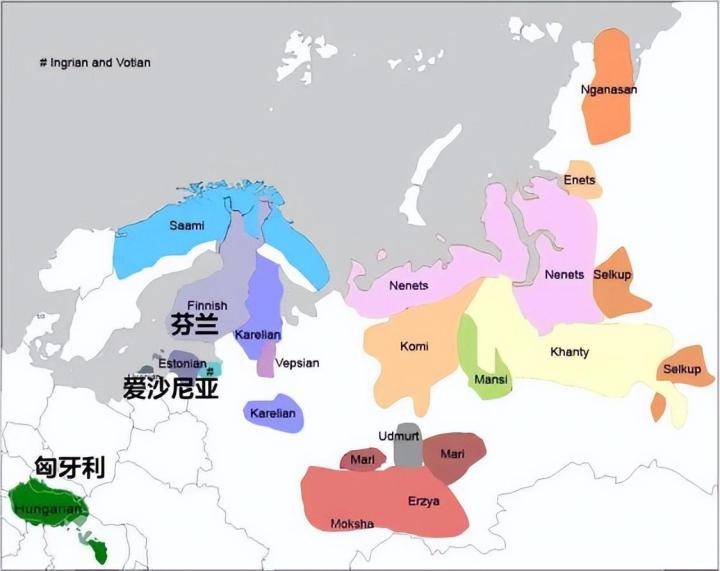 ▲芬兰乌戈尔语系的分布,主要包括芬兰语和爱沙尼亚语