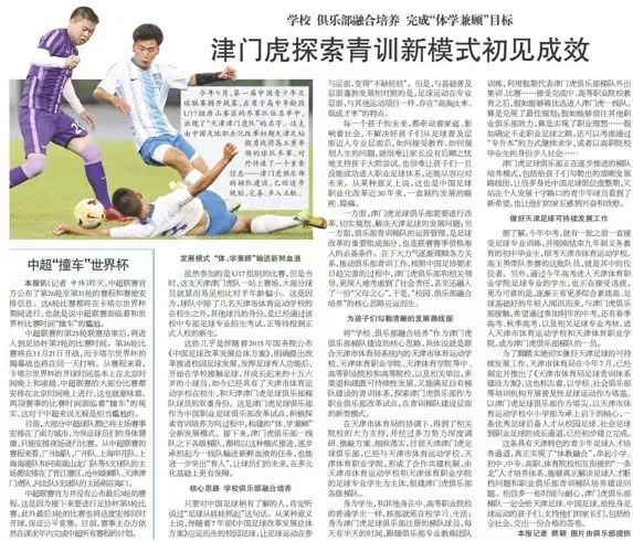 这条具有天津特色的青少年足球人才培养培通道,真正实现了“体教融合”,串起小学、初中、中专、高职、体育院校相互衔接的“一条龙”人才培养体系,能够真正解决足球人才断档问题和职业俱乐部青训梯队培养建设问题。相信多一些时间与耐心,津门虎俱乐部梯队一定会给天津足球、中国足球,给投身足球运动的孩子们、支持他们的家长们,包括给全社会,交出一份合格的答卷。