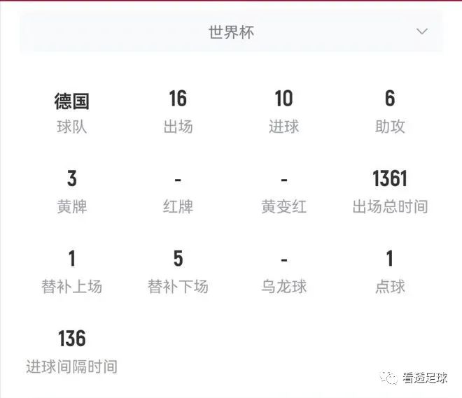 在2002年的韩日世界杯赛场上,克洛泽更是在小组赛面对沙特队单场比赛打入4球,这样的记录也很难在今后的赛场上复制。
