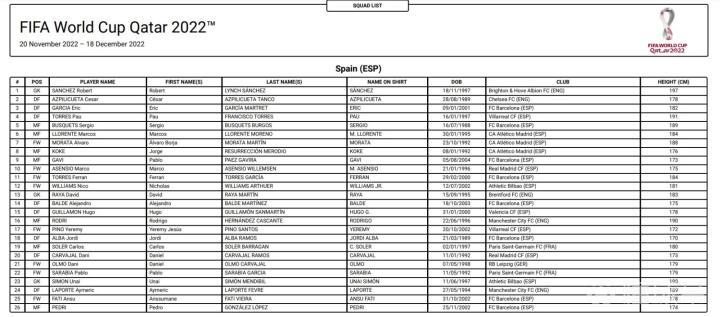 西班牙本次世界杯名单原先左后卫为阿尔巴和加亚,在加亚因伤退出国家队后,西班牙队官方宣布,巴尔德递补入选参赛。FIFA官网同样更新西班牙队名单,加亚退出,巴尔德在列。