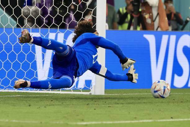 墨西哥对波兰的比赛进行到第56分钟,莱万突入墨西哥禁区被莫雷诺放倒,主裁判回看录像后判罚点球。面对亲自站上罚球点的莱万,第5次参加世界杯的墨西哥门神奥乔亚横身一扑,将点球拒之门外。“墨西哥吴镇宇”由此成为本届世界杯第一个扑出点球的门将!从扑救动作来看,奥乔亚大概是专门研究过莱万主罚点球的方式,他先是略向莱万的左手方向虚晃一下,在莱万将球打向自己右手方向时,奥乔亚又迅速回身扑向这一侧,最终准确将球救出。这次关键扑球,为墨西哥拿到了一个0比0平局。