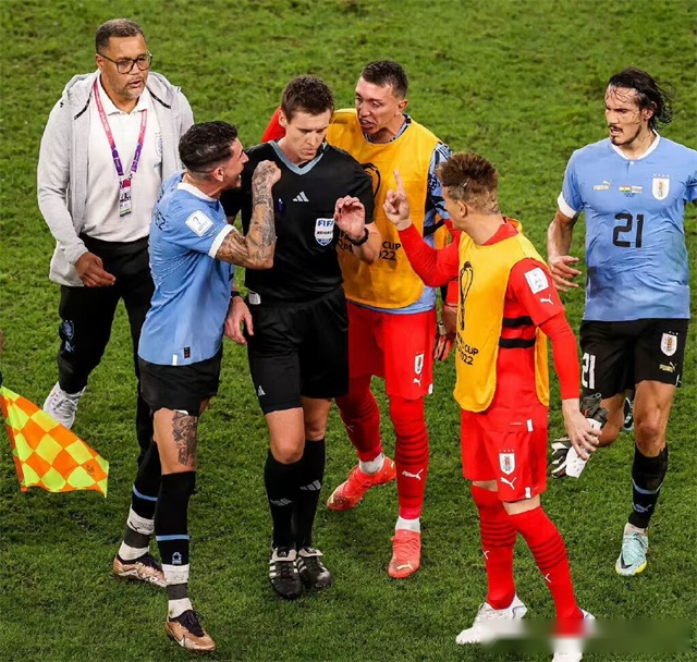卡塔尔世界杯H组第3轮,乌拉圭2-0加纳,但仍因进球数劣势被韩国挤出去无缘出线!该场比赛出现多次争议判罚,乌拉圭球员赛后围攻裁判,愤怒的卡瓦尼还一拳击倒了场边的VAR设备。