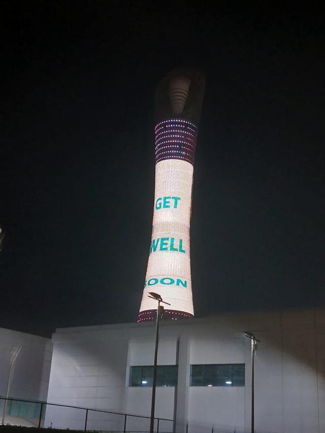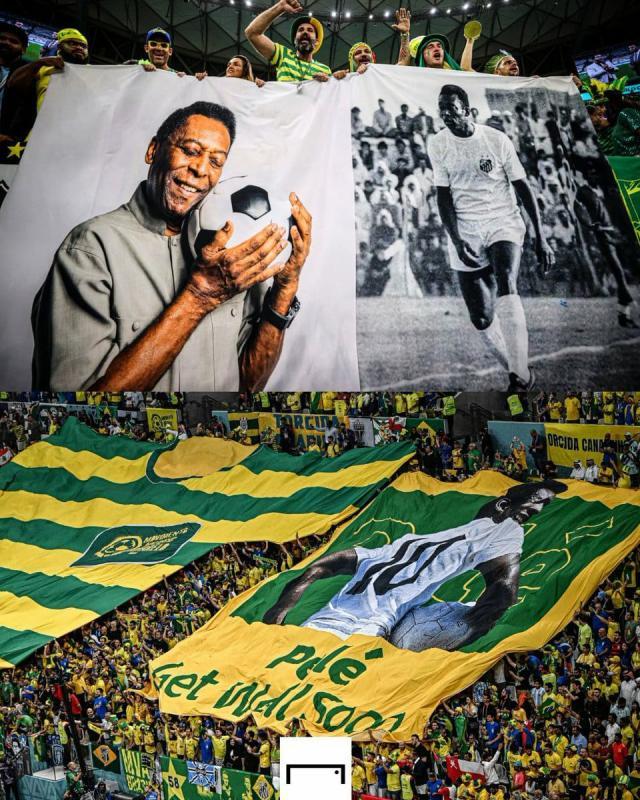 贝利的病情牵动着整个世界,也牵动着世界杯参赛球员的心。12月1日卡塔尔多哈多栋大厦打出彩色图像,致敬贝利,希望他早日康复。当天,贝利的社交媒体官方账号表示了感谢:“朋友们,我在医院做每月的检查。感谢卡塔尔的致敬,感谢所有向我发送正能量的人。”12月2日,卡塔尔世界杯G组第三轮,巴西队与喀麦隆队的比赛,球迷在看台上打出巨幅球衫,上面有贝利的照片和“贝利,快点好!”字样。巴西队前锋维尼修斯、罗德里戈和前球星里瓦尔多等都通过社交媒体发声,祝愿贝利早日康复。12月3日,法国队前锋姆巴佩发推:“为球王祈祷。”英格兰队队长哈里·凯恩也祝球王早日康复。桑托斯球迷组织号召球迷巴西时间12月4日10点至13点间,到阿尔伯特·爱因斯坦医院门前为贝利祈福。