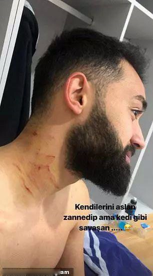 如果说上面的例子多少还有点欢乐的成分,那下面这个例子就比较恐怖了,2019年3月2日,土耳其阿梅德(库尔德人聚居城市的球队)主场与萨卡里亚的比赛中,阿梅德队长曼苏尔-卡拉尔(库尔德人)做出了让全世界震惊的举动:他偷偷把锋利的刀片带进球场,在比赛过程中多次偷袭对手,甚至在争执中割伤了21号亚兹甘的脖子。