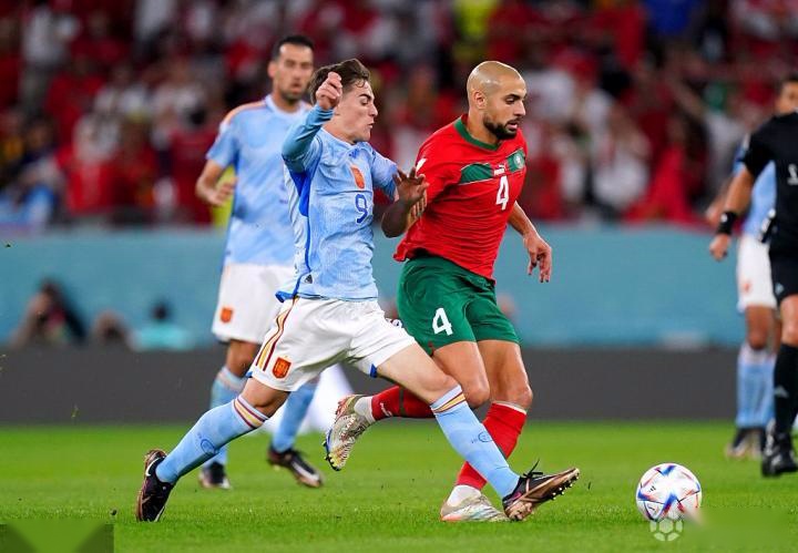 世界杯八分之一决赛,摩洛哥对阵西班牙,上半场比赛结束,双方战成0-0。
