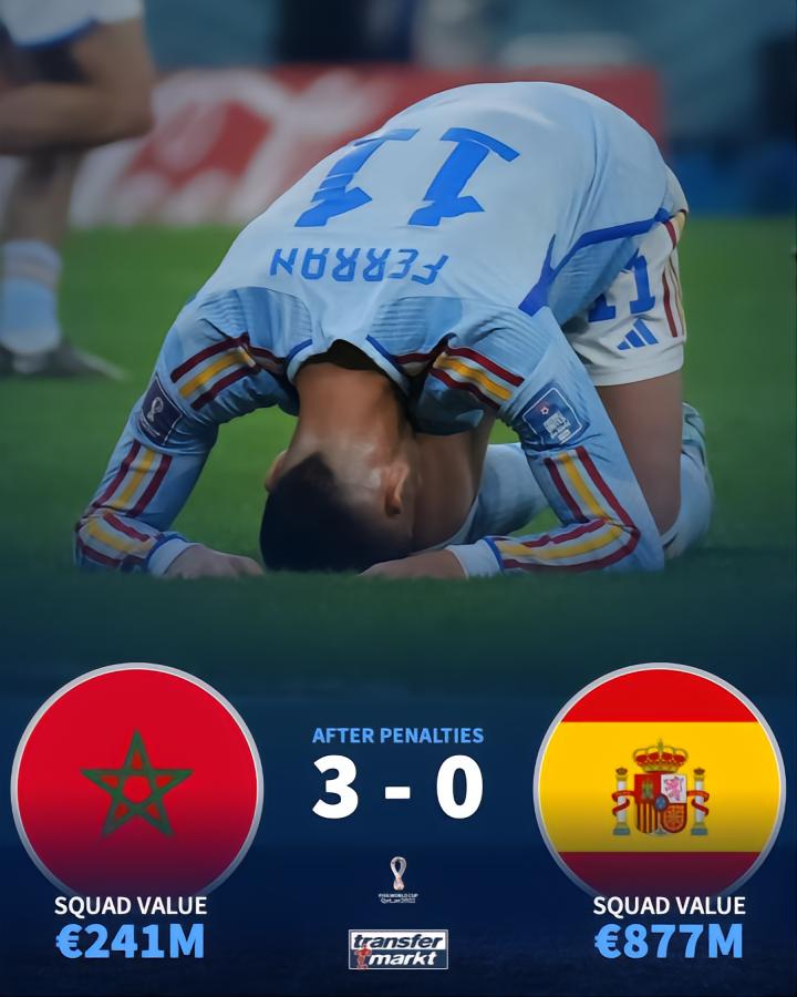 我觉得佩德里、加维和法蒂这几个还没真正在大赛证明过自己的年轻球员都被吹到了过高的高度,不否认他们很有潜力,但现在的传播给他们巨大声望可能会给他们带来进一步提升的压力,中生代的莫拉塔跟卢卡库是一料子货色。这场比赛,要不是摩洛哥替补上来的中锋谢迪拉(本届世界杯最差前锋)三次不杀之恩,西班牙哪有机会踢加时踢点球?