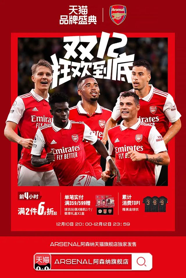 阿森纳官方旗舰店双十二大促!
