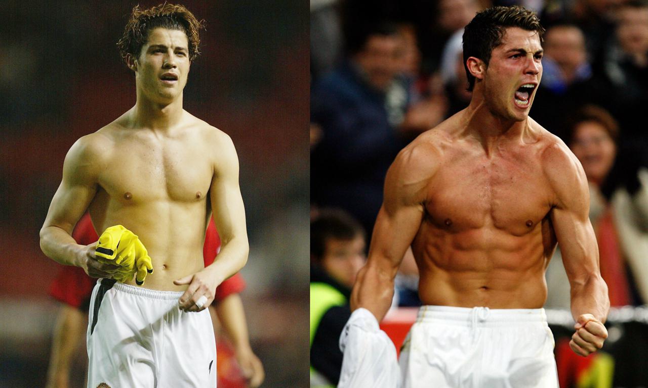 虽然C罗在葡萄牙体育就有意识的进行肌肉力量训练,甚至用双腿绑沙袋这种原始的少林寺武僧训练法来增肌,但那时的他,身材其实也就是从“成熟发育平均分之下”练成了个“加强版白斩鸡”。
