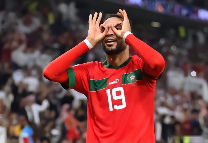 在对阵葡萄牙的上半场比赛中,摩洛哥前锋恩-内斯里打入一粒进球。