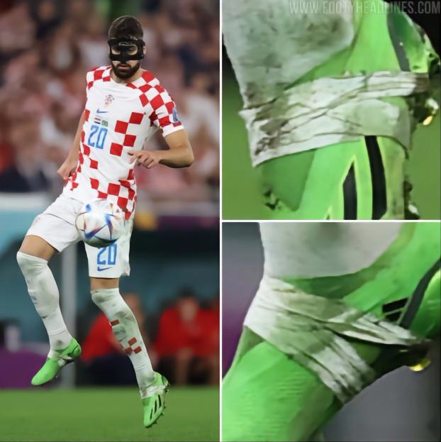 据知名足球装备网Footy Headlines消息,克罗地亚后卫格瓦迪奥尔是目前世界杯上表现最好的球员之一,他在四分之一决赛对阵巴西的比赛中对自己的战靴上做出了一些调整。