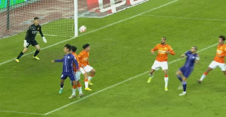 第18分钟,石炎后点头球吊射被高翔单掌托出。