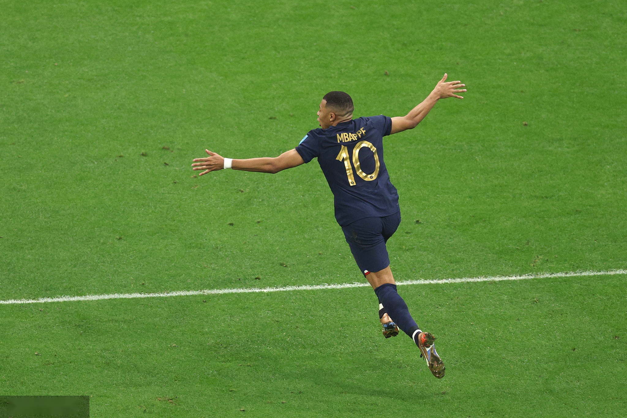 第79分钟,穆阿尼带球快速突入禁区被奥塔门迪从身后拽倒,主裁判判罚点球,姆巴佩主罚点球命中,法国扳回一球,仍1-2落后。第82分钟,小图拉姆挑传禁区左侧,姆巴佩凌空抽射破门,法国2-2扳平比分。