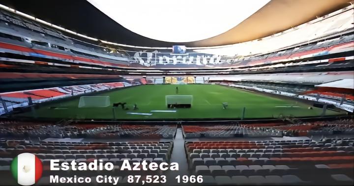 阿兹特克球场是墨西哥城的一座足球场,可容纳8.7万余人,是墨西哥最大的体育场也是美洲最大的体育场。 这也是举办过两届国际足联世界杯决赛的体育场。贝利和马拉多纳都在这里捧起过世界杯的冠军奖杯。马拉多纳的上帝之手和世纪进球就发生在这座球场。除了世界杯;这座球场地举办了所有类型的国际足联男足国家队比赛,包括各自的决赛(联合会杯、奥运会足球赛、U20世界杯和U17世界杯)。