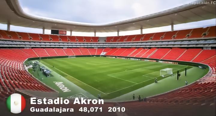 阿克伦球场,它的容量接近5万人,体育场具有独特的形式,其设计类似于一座正在喷发的火山,体育场的白色薄膜,看起来像盘旋在火山上方的云。周围环绕着的绿地一直延伸至上部,当没有比赛时,这里的斜坡变成了公园。现为墨西哥足球超级联赛球队瓜达拉哈拉的主场。