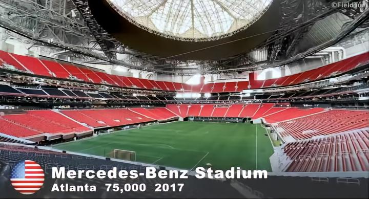 梅赛德斯奔驰球场这座2017年刚刚落成的球场位于美国佐治亚州亚特兰大市,是一座多功能体育场。可容纳75000名观众。它是美国国家足球联盟(NFL)亚特兰大猎鹰队和美国足球大联盟(MLS)亚特兰大联队的主场。场馆从一开始规划时,便强调了多用途的属性。 除了举办日常的NFL和MLS主场比赛外,设计之初球场各项规格就严格按照国际足联世界杯举办场地的要求。有趣的是,该体育场还有一个全年为游客开放的特殊旅程。在这个90分钟的幕后旅程中,游客将近距离踏足球场,球员休息室,贵宾室等,感受偶像们挥汗如雨的点点滴滴,同时聆听到一些鲜为人知的赛场幕后故事。
