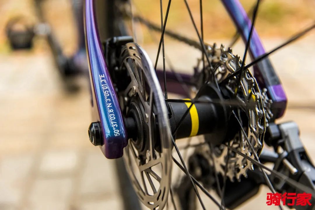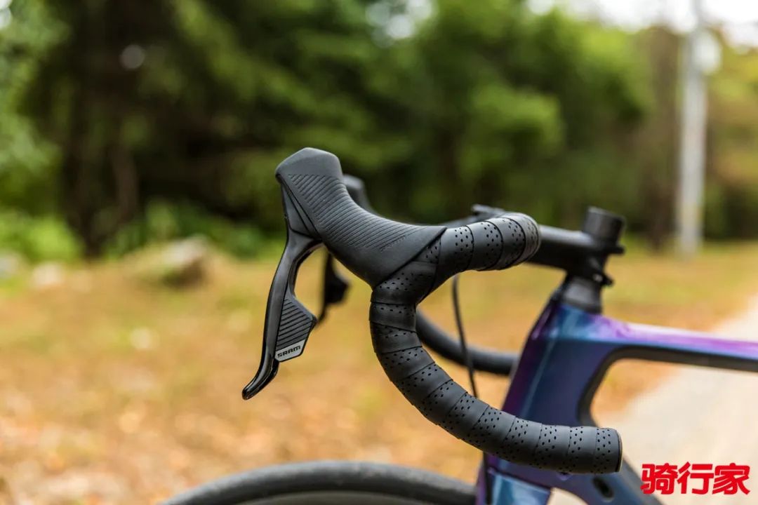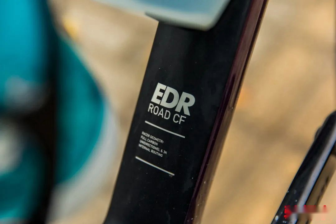 我们所拿到的EDR CF AXS是M码,相当于54码车款。其实从它的几何来看,它更偏向于竞赛几何,和其他品牌的Endurance车款相比,EDR CF AXS的几何更激进,所以不要被它的名字所欺骗,你就当是一款竞赛公路车来看待它。如果想要更舒适的上半身姿态,你倒是可以更换一根直头座管。较为水平的上管设计,在选择尺码时也要注意跨高是否合适。